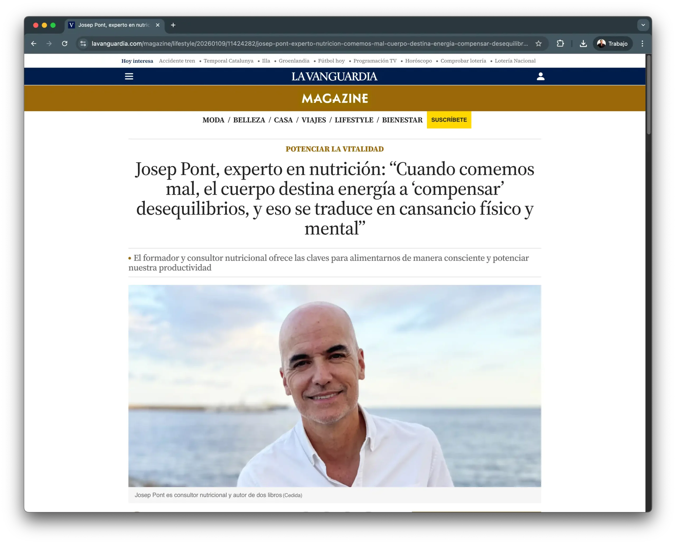 Josep Pont, experto en nutrición: “Cuando comemos mal, el cuerpo destina energía a ‘compensar’ desequilibrios, y eso se traduce en cansancio físico y mental”