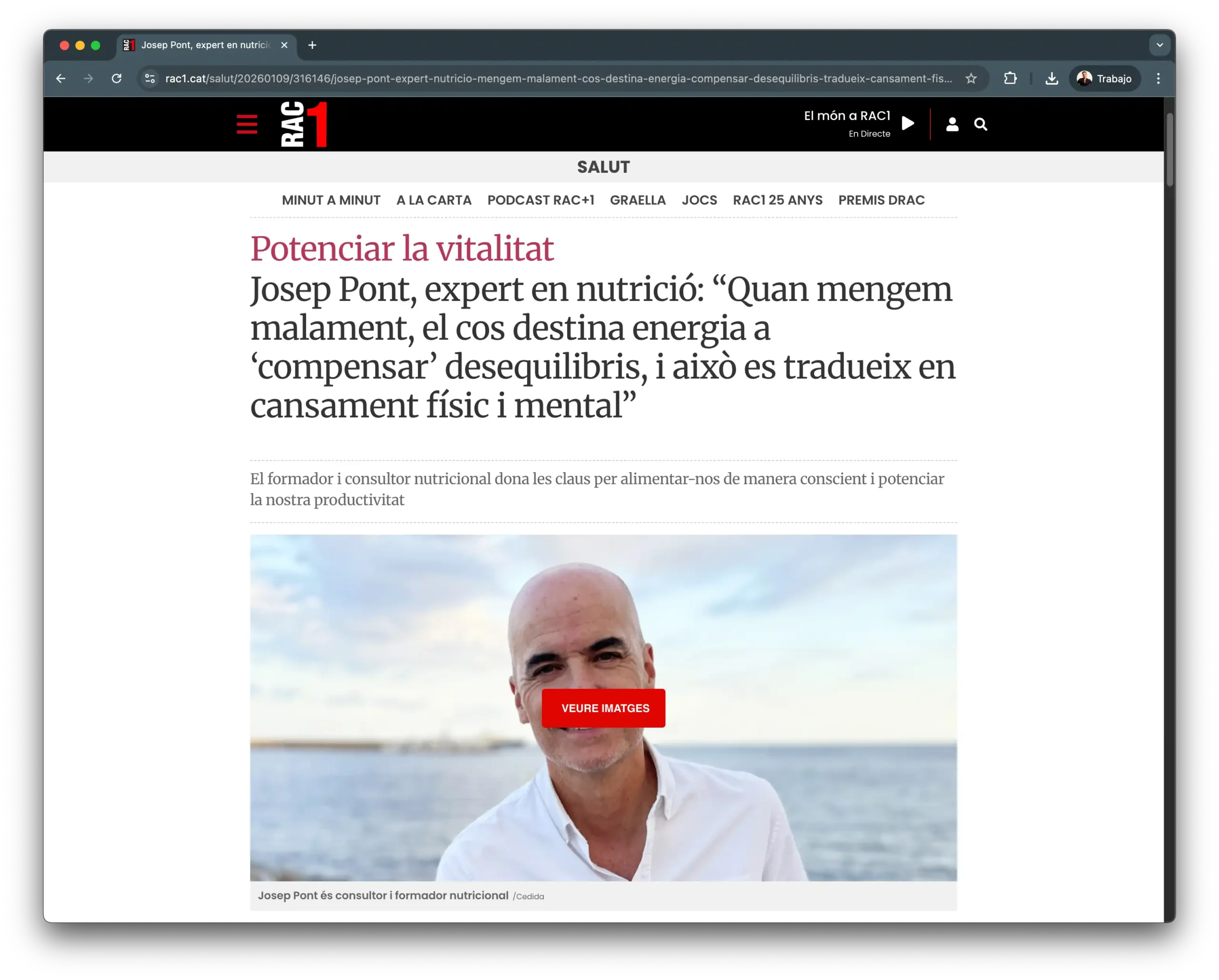 Josep Pont, expert en nutrició: “Quan mengem malament, el cos destina energia a ‘compensar’ desequilibris, i això es tradueix en cansament físic i mental”